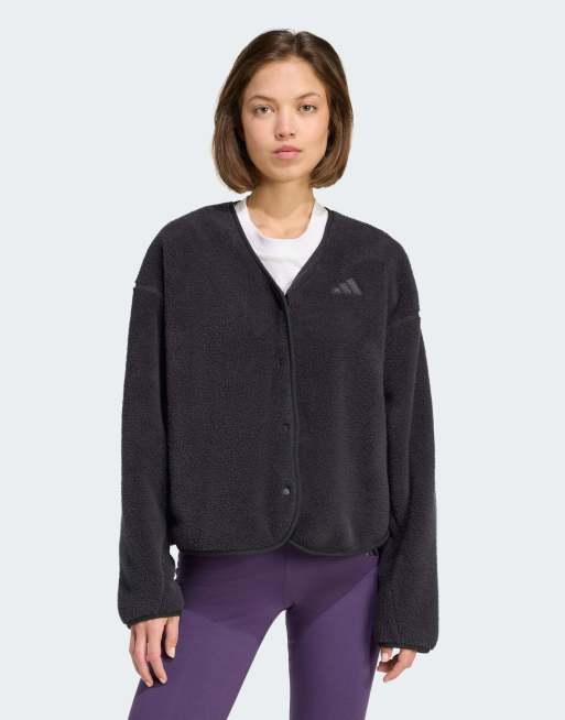 adidas Performance Future Icons - Sort cardigan med 3 striber i fleece
