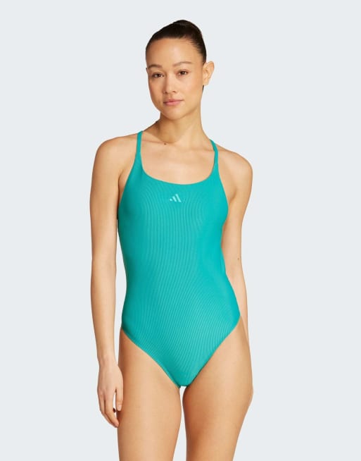 adidas Performance - Iconisea - Blågrøn ribstrikket badedragt med tynde stropper og polstring