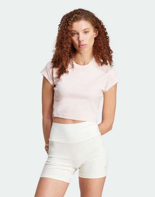adidas Performance - Lyserød cropped lounge-T-shirt i ribstrik