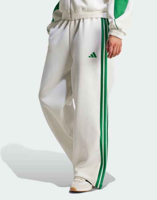 adidas Performance - Stadium - Hvide/grønne træningsbukser med 3 striber
