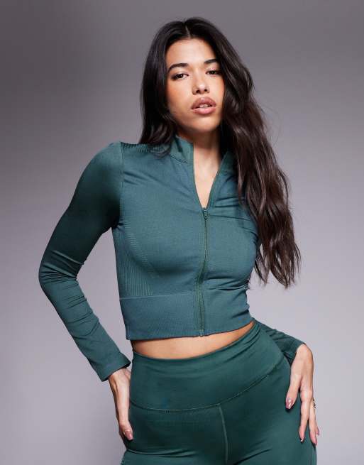 adidas Training - Blågrøn strikket cropped jakke med lynlås