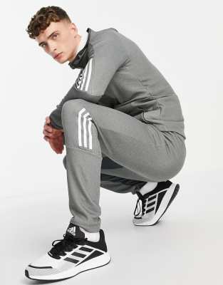 adidas Training - Grå træningsjoggingbukser med 3 striber