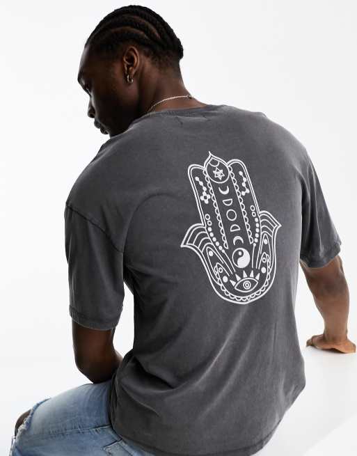 ADPT - Forvasket grå oversized T-shirt med Hamsa-print på ryggen