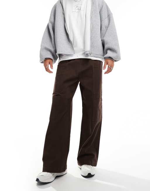 ADPT - Pull-on-cargobukser med vide ben i chokoladebrun