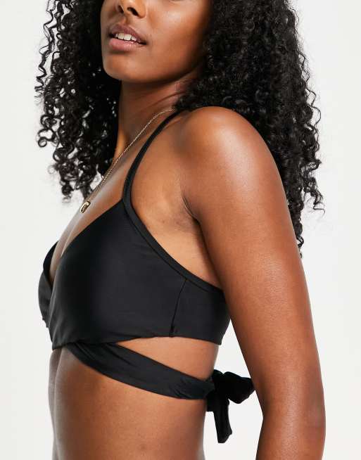 Aerie - Sort bikinitop med halterneck og slå-om-detalje