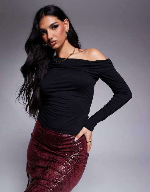 AFRM - Bria - Strikket sort top med lange ærmer og asymmetrisk hals
