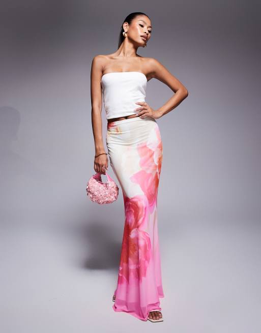 AFRM - Lyserød maxinederdel med ombre-design med blomstermønster