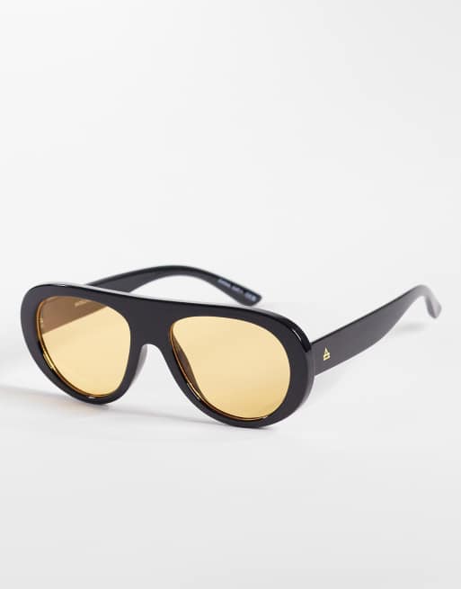 AIRE - Sorte shield-solbriller med ravfarvede glas