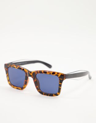AJ Morgan - Firkantede unisex-solbriller med stel i brunt skildpaddemønster og marineblå glas