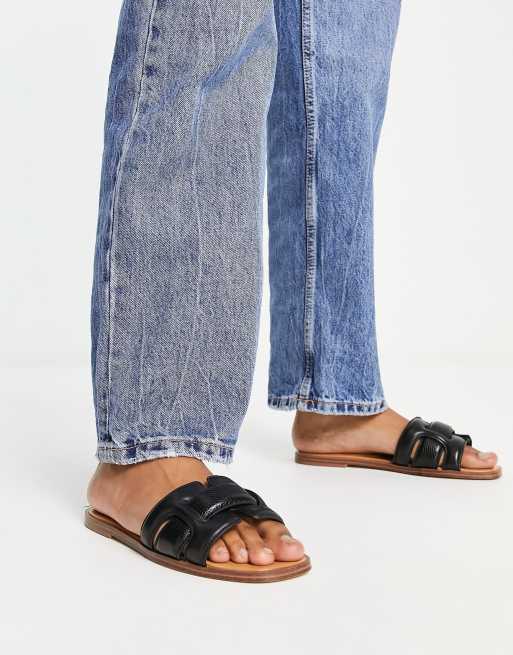 ALDO - Elenaa - Sorte flade sandaler med polstring i læder