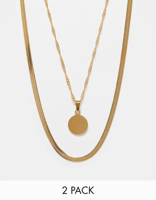 ALDO - Pakke med 2 guldfarvede halskæder med kompasvedhæng i rustfrit stål