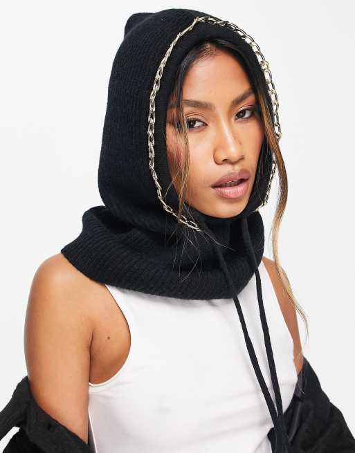 ALDO - Yba - Sort, strikket hætte med kædeudsmykning