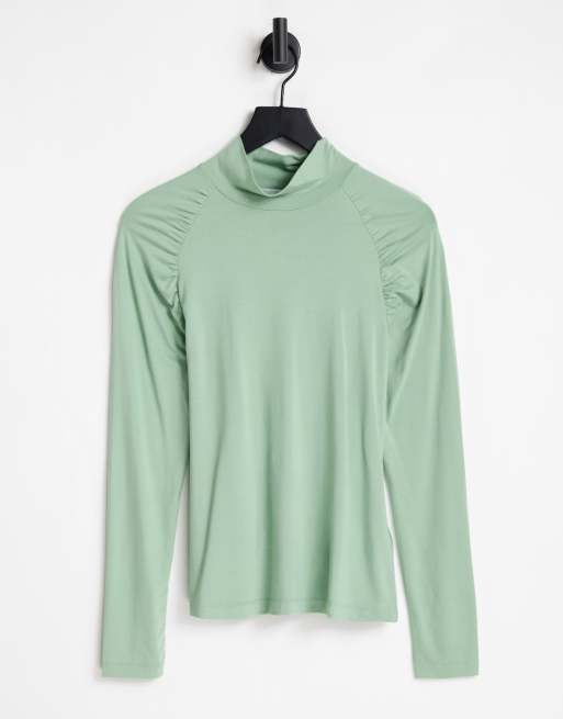Aligne - Højhalset top med rynkede skuldre i grøn