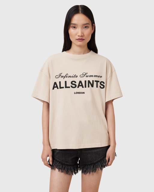 - AllSaints, som blev startet i det østlige London, vakte opmærksomhed i midt-90'erne med deres eksklusive læderjakker. I dag afspejles den afslappede attitude, som kendetegner mærket, i slidt denim, draperede snit og klassisk jersey.