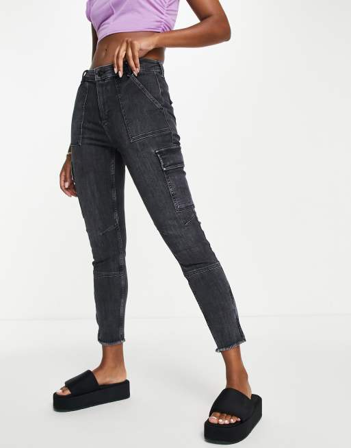 AllSaints - Forvaskede, sorte cargojeans i skinny fit