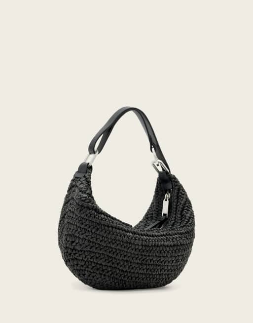 AllSaints - Luna Crecent - Sort buet taske i raffia