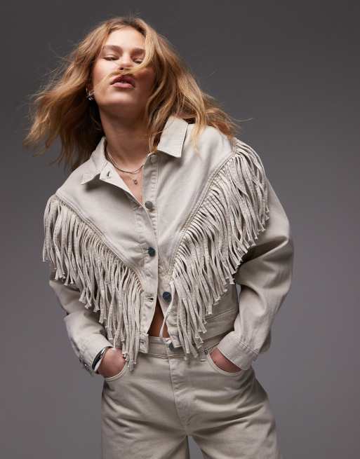AllSaints - Marlene - Cremehvid jakke med frynser