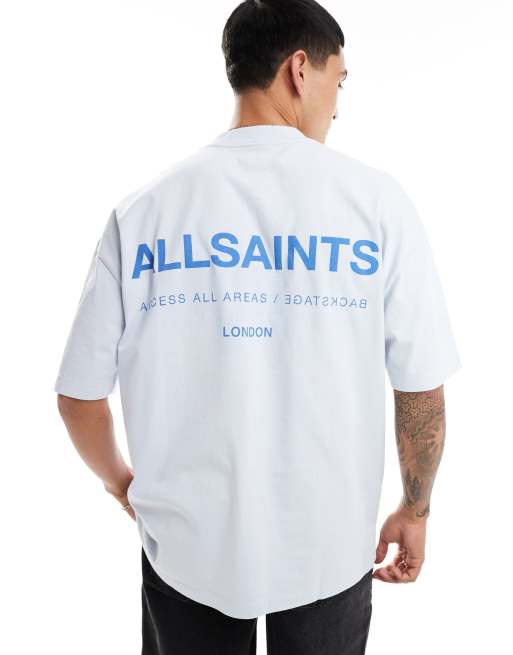 AllSaints - Oversized lyseblå T-shirt med "Access Underground"-print