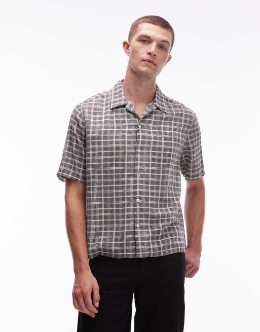 AllSaints - Sandy - Gråternet skjorte med korte ærmer