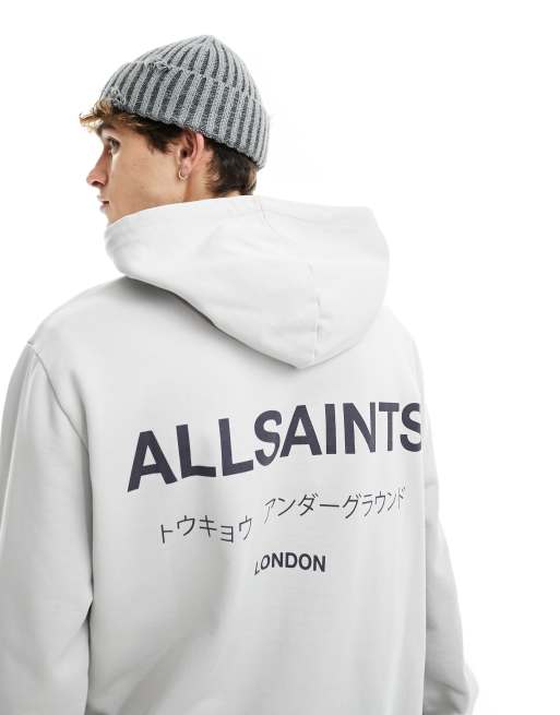 AllSaints - Underground Oth - Grå hættetrøje med print på ryggen