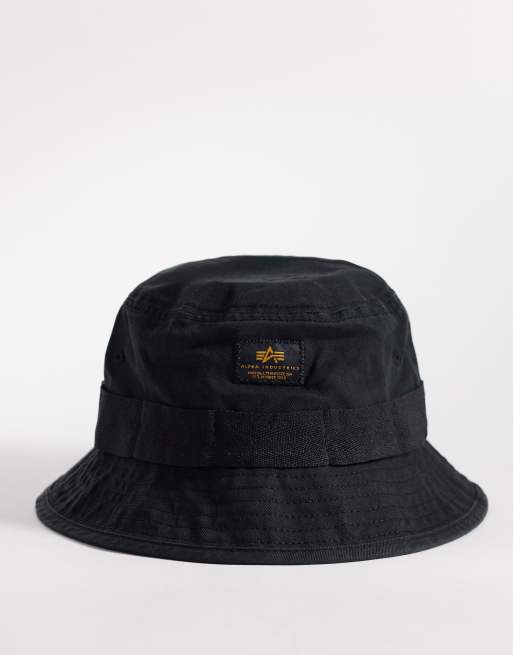 Alpha Industries - Forvasket sort bøllehat med logo
