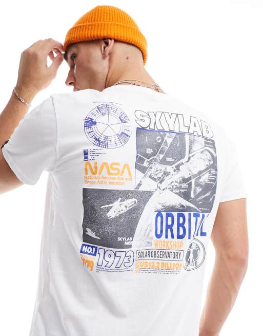 Alpha Industries - Hvid T-shirt med 'NASA'-print bagpå