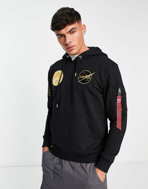 Alpha Industries - NASA Voyager - Sort hættetrøje med mærker