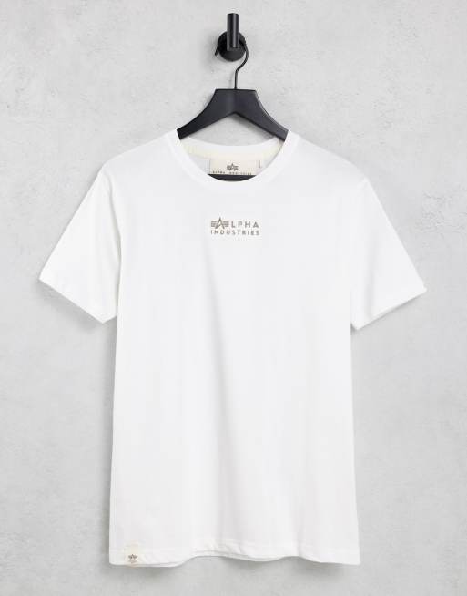 Alpha Industries - Råhvid T-shirt med centreret broderet logo - WHITE