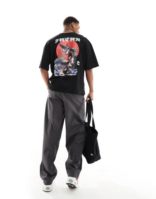 Alpha - Sort T-shirt med 'Japan Wave Warrior'-print i afslappet pasform