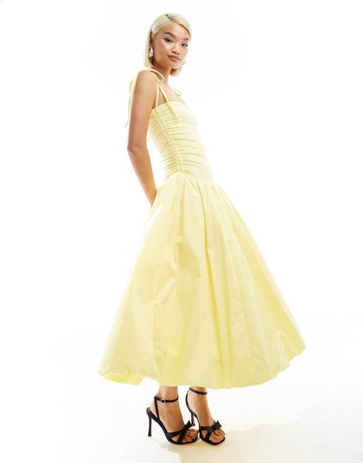 Amy Lynn - Alexa - Gul puffet midikjole med bindebånd på skulderen