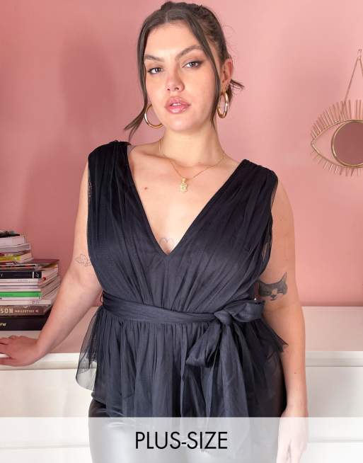 Anaya With Love Plus - Sort top med bindebånd i taljen i tyl