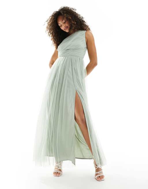 Anaya - Brudepiger - Salviegrøn oneshoulder-maxikjole i tyl