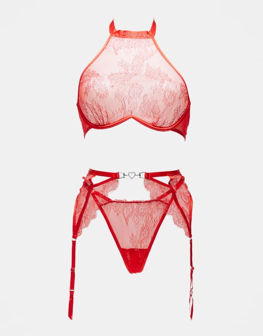 Ann Summers - Glimmer - Rødt bundløst sæt i 3 dele