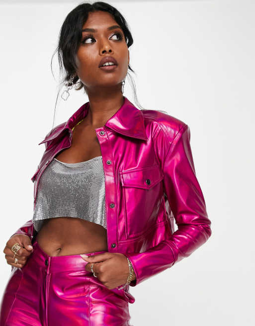 Annorlunda - Pink jakke med brede skuldre i holografisk imiteret læder - Del af sæt