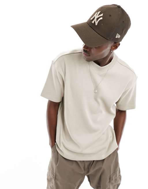 Another Influence - Beige firkantet ribstrikket T-shirt
