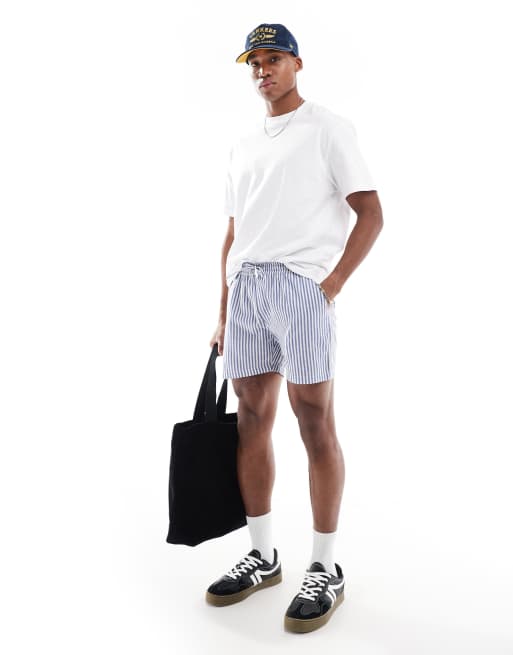 Another Influence - Blå og hvide shorts med striber i afslappet pasform