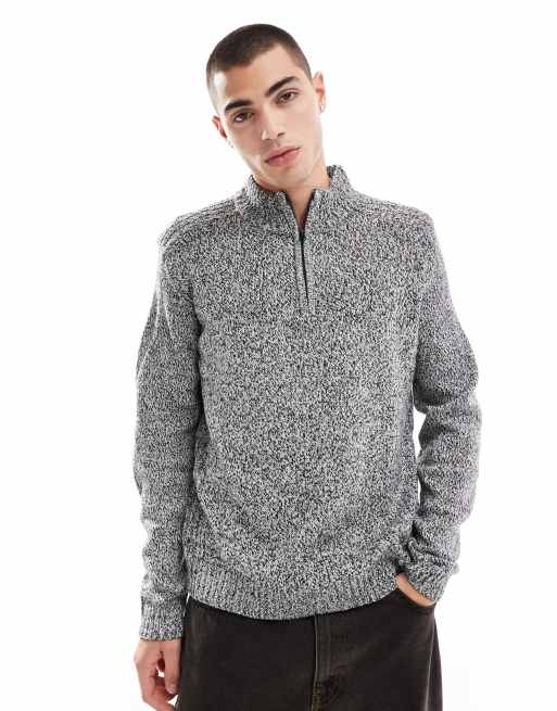 Another Influence - Gråmeleret chunky trøje med lynlås og ståkrave