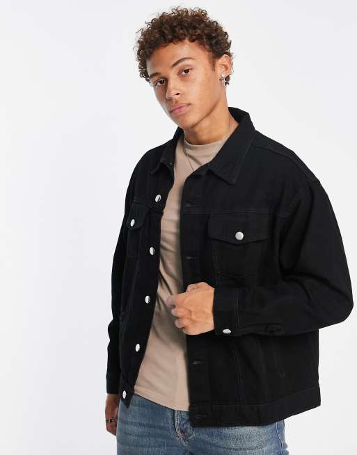 Another Influence - Oversized denimjakke i sort