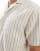 Another Influence - Sandfarvet skjorte med korte ærmer og marineblå striber i hør