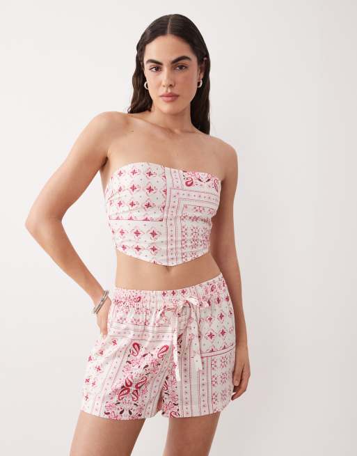 Aray - Lommetørklæde-strandtop i pink bandanaprint
