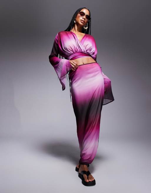 Aria Cove - Lilla strandsæt med slå-om-top med ærmeslidser og nederdel i chiffon