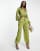 Aria Cove - Olivengrønt sæt i satin med cropped skjorte og joggingbukser