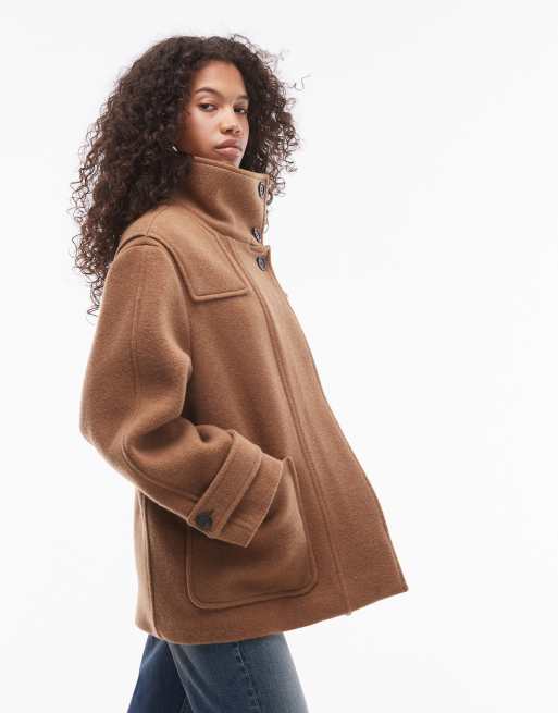 ARKET - Beige duffelcoat med ståkrave, overlag på bærestykket og påsyede forlommer