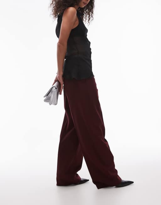 ARKET - Bordeaux jeans i uldblanding med lige ben og flad front