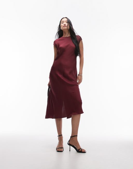 ARKET - Bordeauxrød midaxikjole i satin med små ærmer
