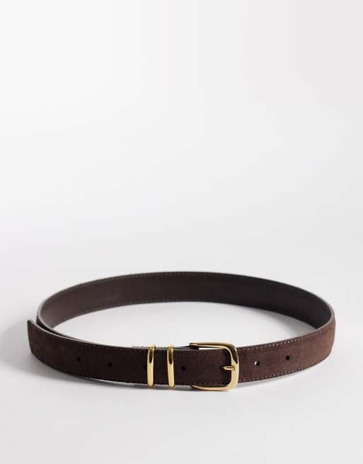 ARKET - Brunt bælte i rent ægte ruskindslæder med guldfarvet spænde