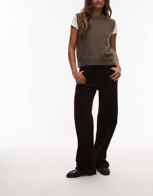 ARKET - Coral - Lavtaljede, baggy og bordeauxrøde fløjlsbukser med brede ben og stretch