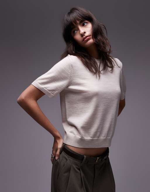 ARKET - Lys beige T-shirt med korte ærmer i merinould