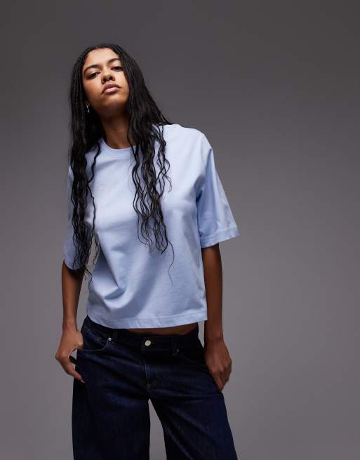 ARKET - Lyseblå og kraftig T-shirt med firkantet pasform