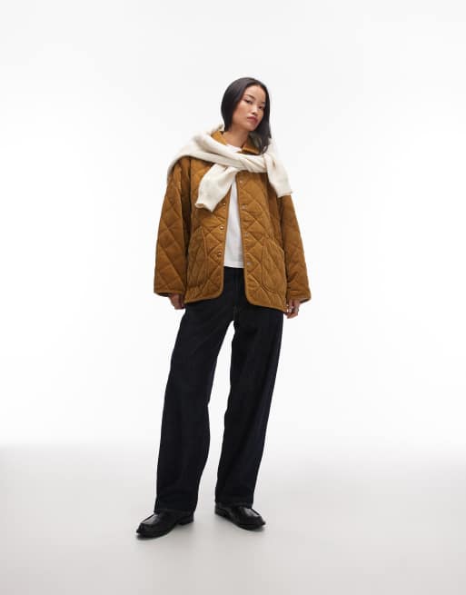 ARKET - Lysebrun fløjlsjakke med vatteringer og kontrasterende krave